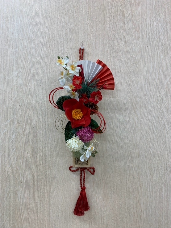 花材◇アートフラワー(椿/蘭/梅/菊/松)松笠/水引/扇子/シサル麻/ジュートファイバー